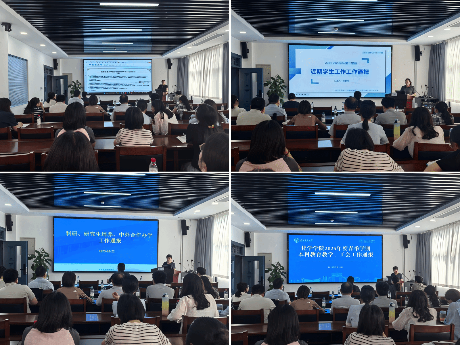 会议第二阶段,院领导通报学院近期各项工作开展情况。向仲敏书记代周祚万经理通报学院与学校签订的2025年度目标任务书内容,逐一分析党建安稳、团队建设、人才培养、科学研究、团队建设等指标,强调全体教职工应聚焦年度目标任务,深刻认识学院现阶段所处位置,深化思想共识、统一行动步调。