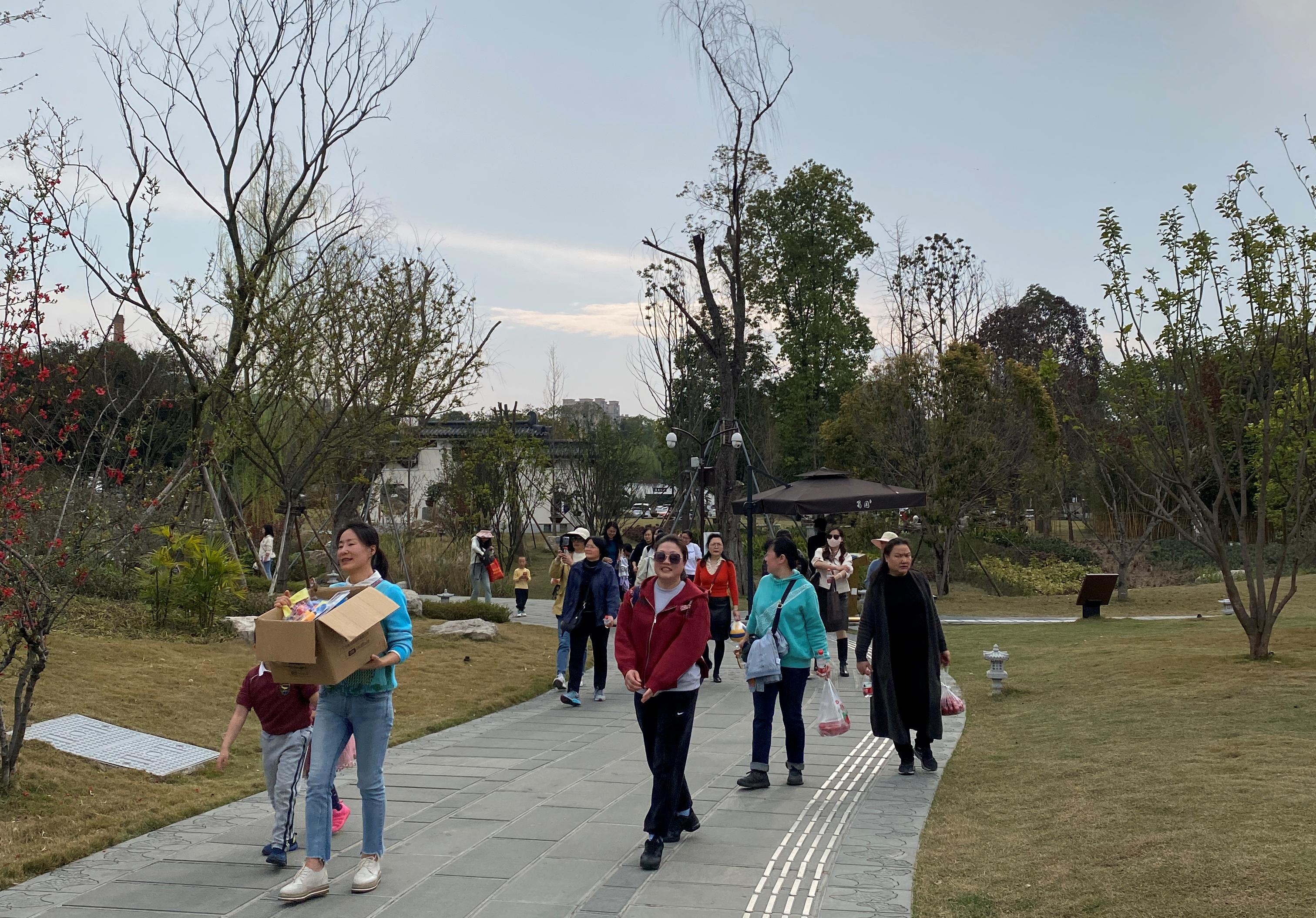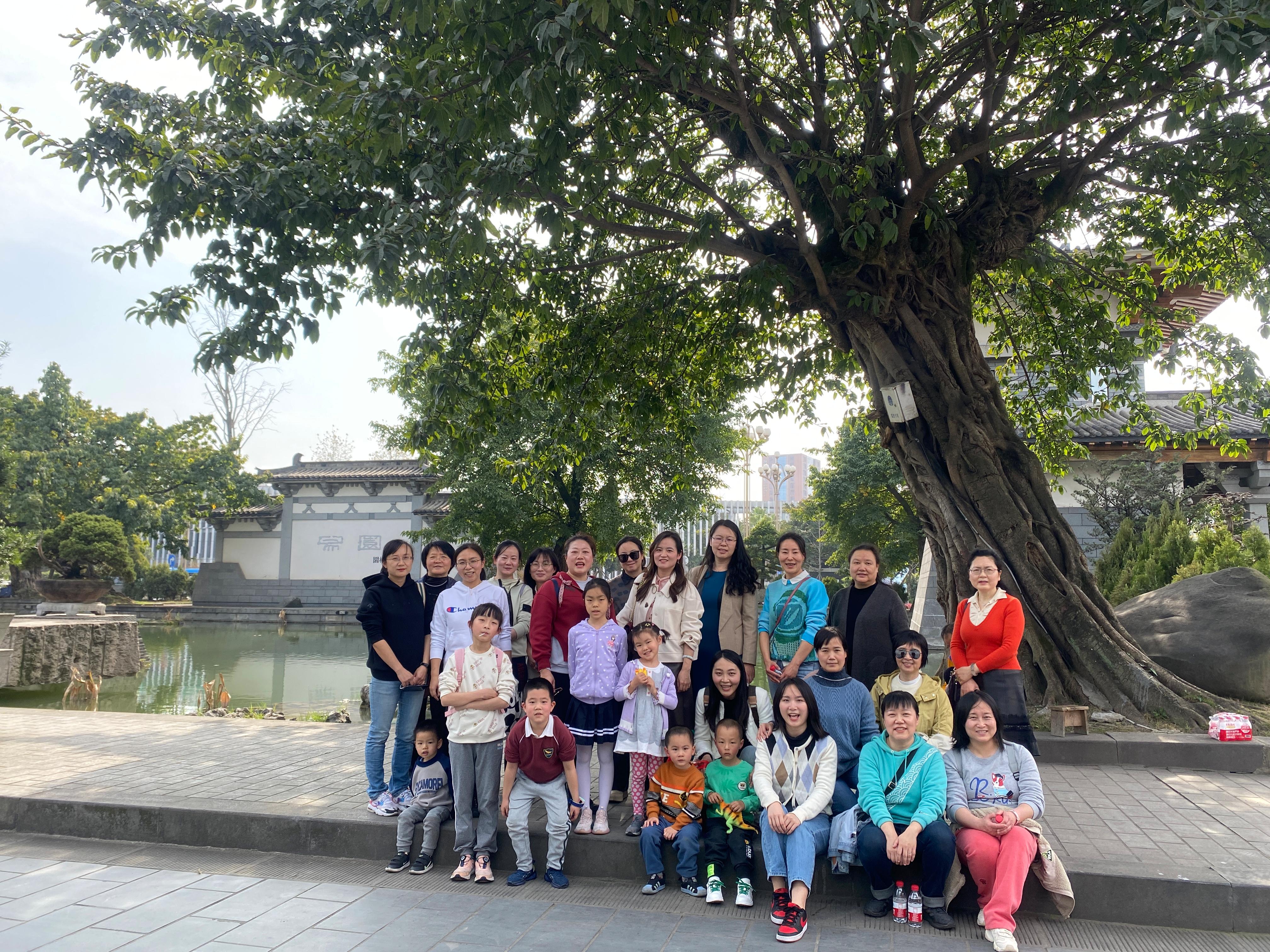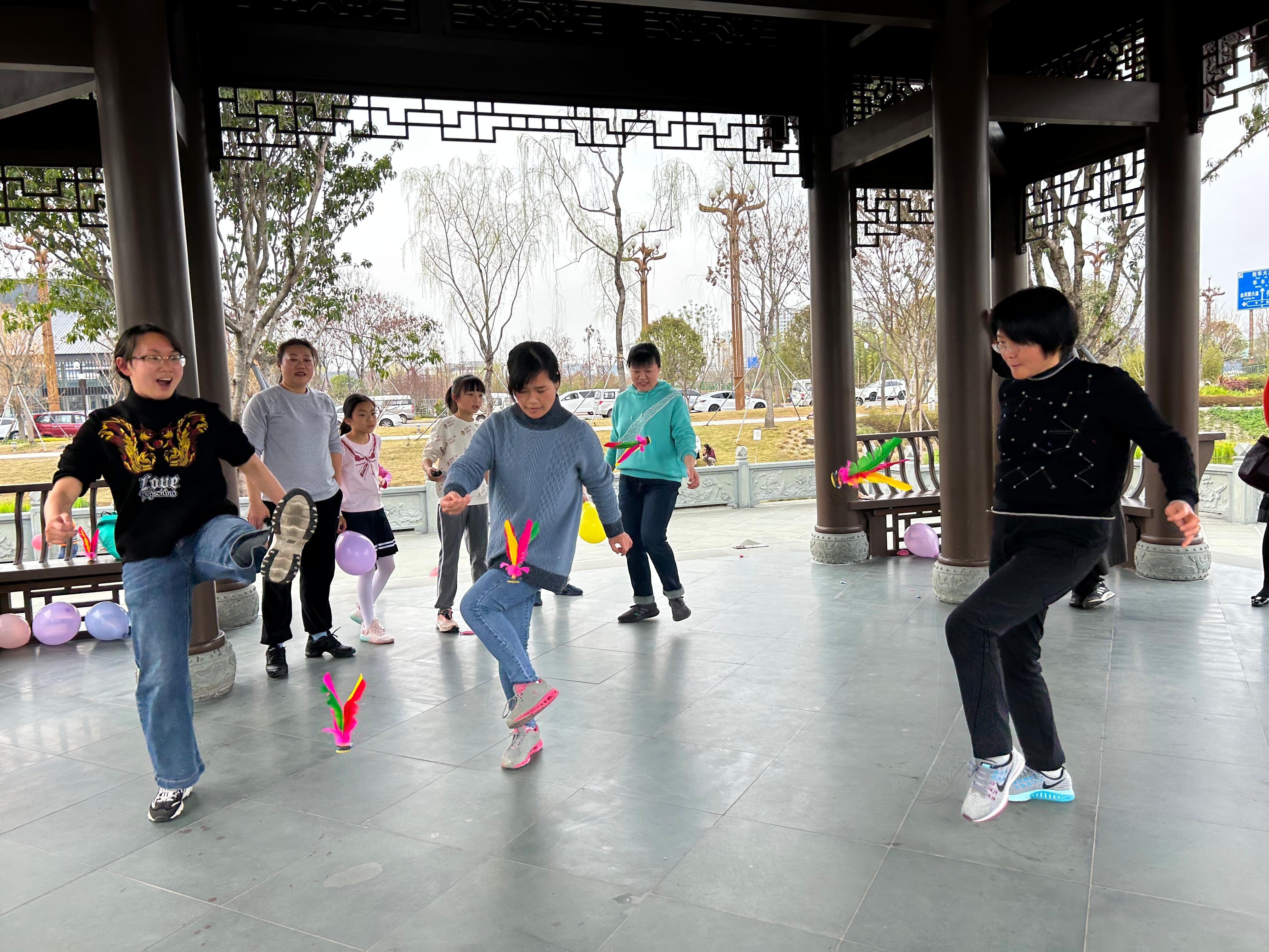 工会还组织了户外团体素质拓展活动。在明媚的春日暖阳里,在静谧的亭台楼阁中,女教工们积极参与,团队协作,增强了新学院新队伍的集体凝聚力。老师们和孩子们一起吹气球、踢毽子、做游戏,极大地释放了工作中的压力,享受了生活中的乐趣。在秀美的环境中,教职工们对绿水青山倍加珍惜,潜移默化中提高了教职工们的环保意识,与绿色化学学科的发展理念相得益彰。