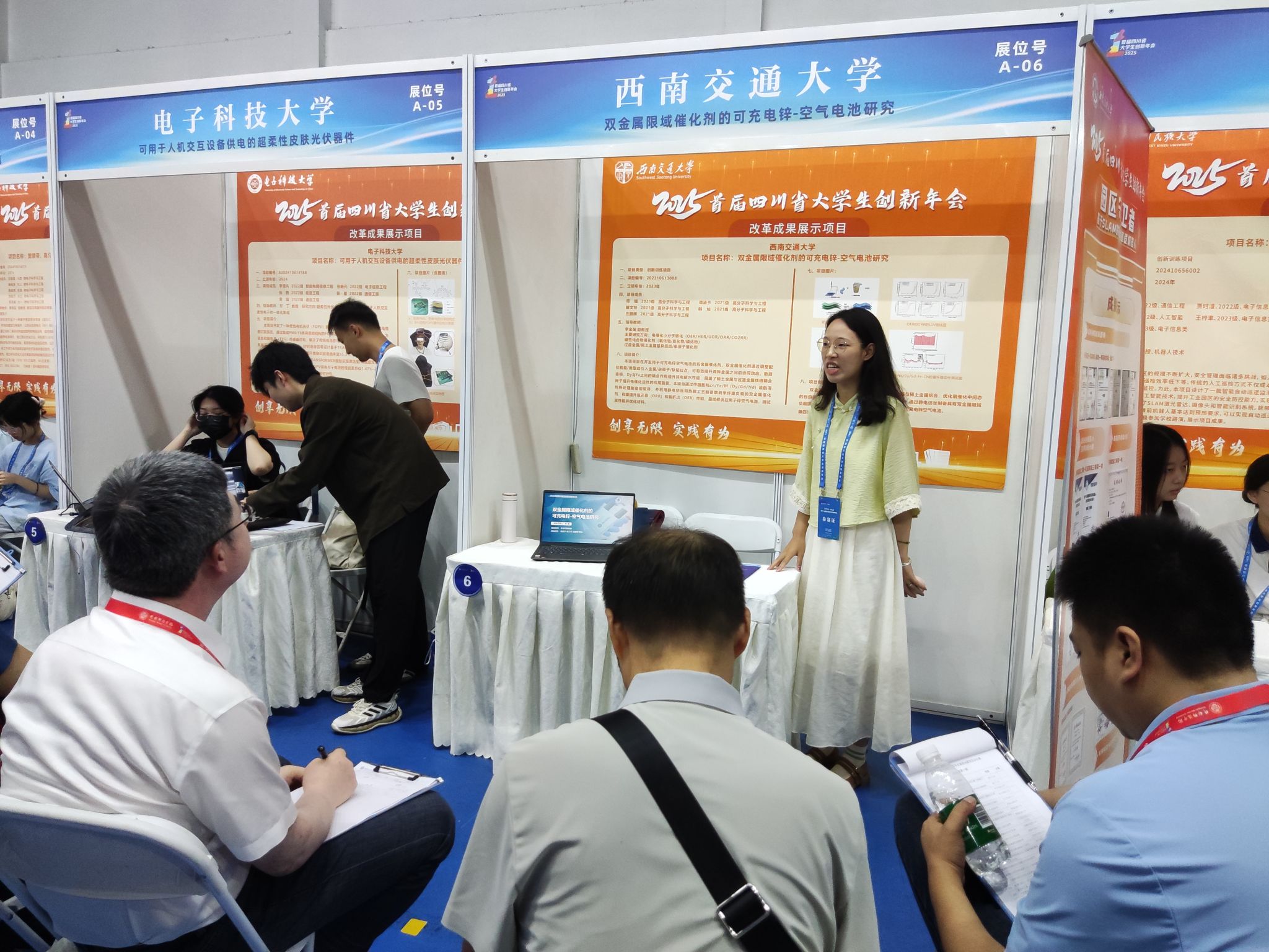 决赛现场通过答辩展示、专家评委提问环节评选,公司2021级本科生周婳同学作为项目负责人参加了现场演讲,项目组成员分别是谭涵予、解文玲、韩灿、庄鹏辉。国家大力发展“双碳”目标的大背景下,锌空电池因其高能量、环境友好等优势而广受关注,但其充放电效率的提升仍面临挑战。公司李金阳老师带领团队巧妙利用稀土金属和过渡金属的协同作用,通过深入研究和反复实验,成功开发出双金属限域催化剂,有效解决了关键技术难题,不仅提高了电池性能,还有望助力四川稀土产业的进一步发展。