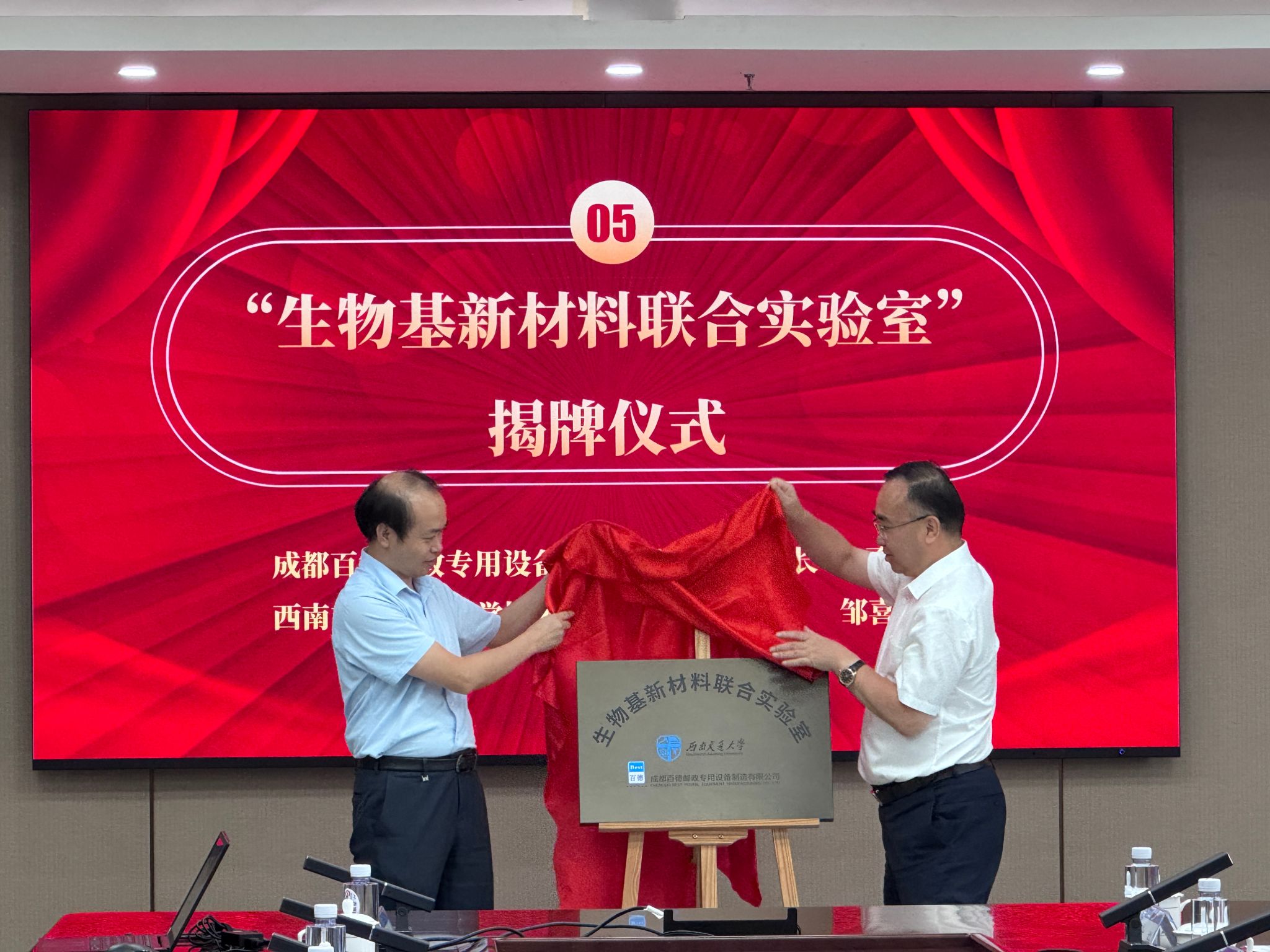 签约仪式技术转移研究院经理张骏主持,科学技术发展研究院经理邹喜华教授、点点taptap官方网站经理周祚万教授及功能高分子团队成员、成都百德副总经理龚永红女士、工程中心经理杨运兰女士等企业方相关人员出席签字仪式。在王平副董事长和李成刚董事长等双方领导见证下,周祚万教授和龚永红女士代表双方在成果转化暨产学研合作协议上签字。邹喜华经理和李成刚董事长为校企共建“生物基新材料联合实验室”揭牌。