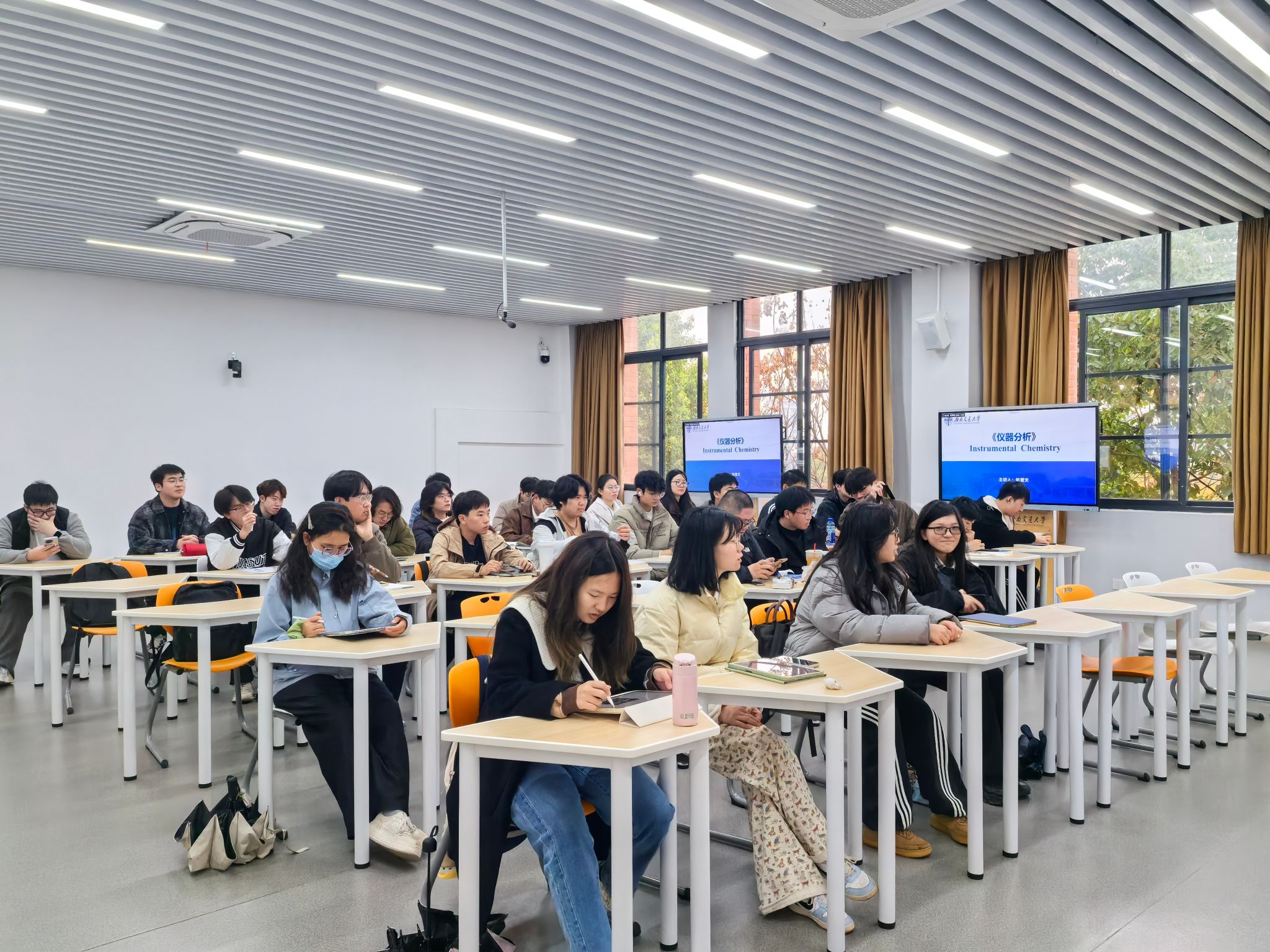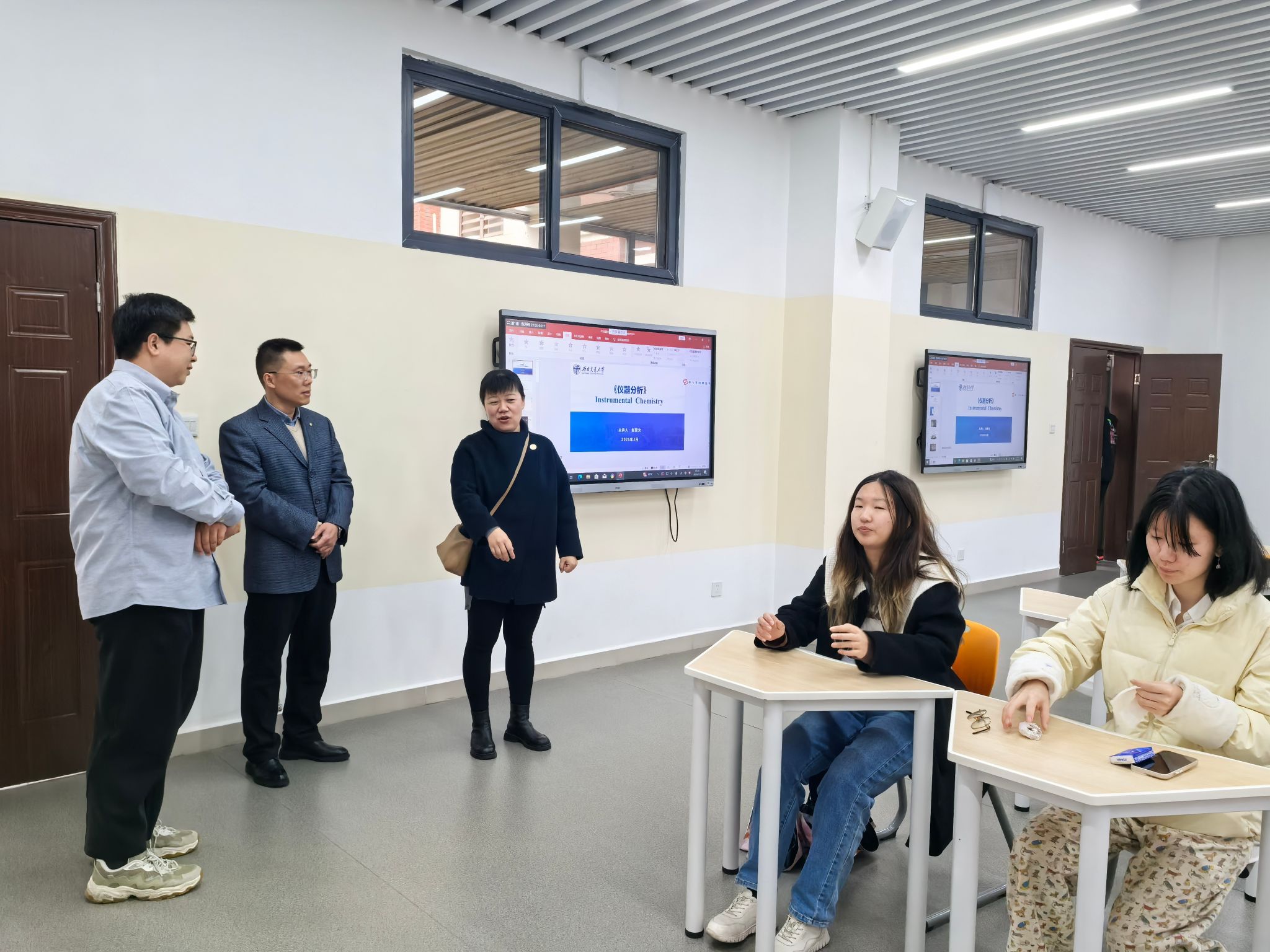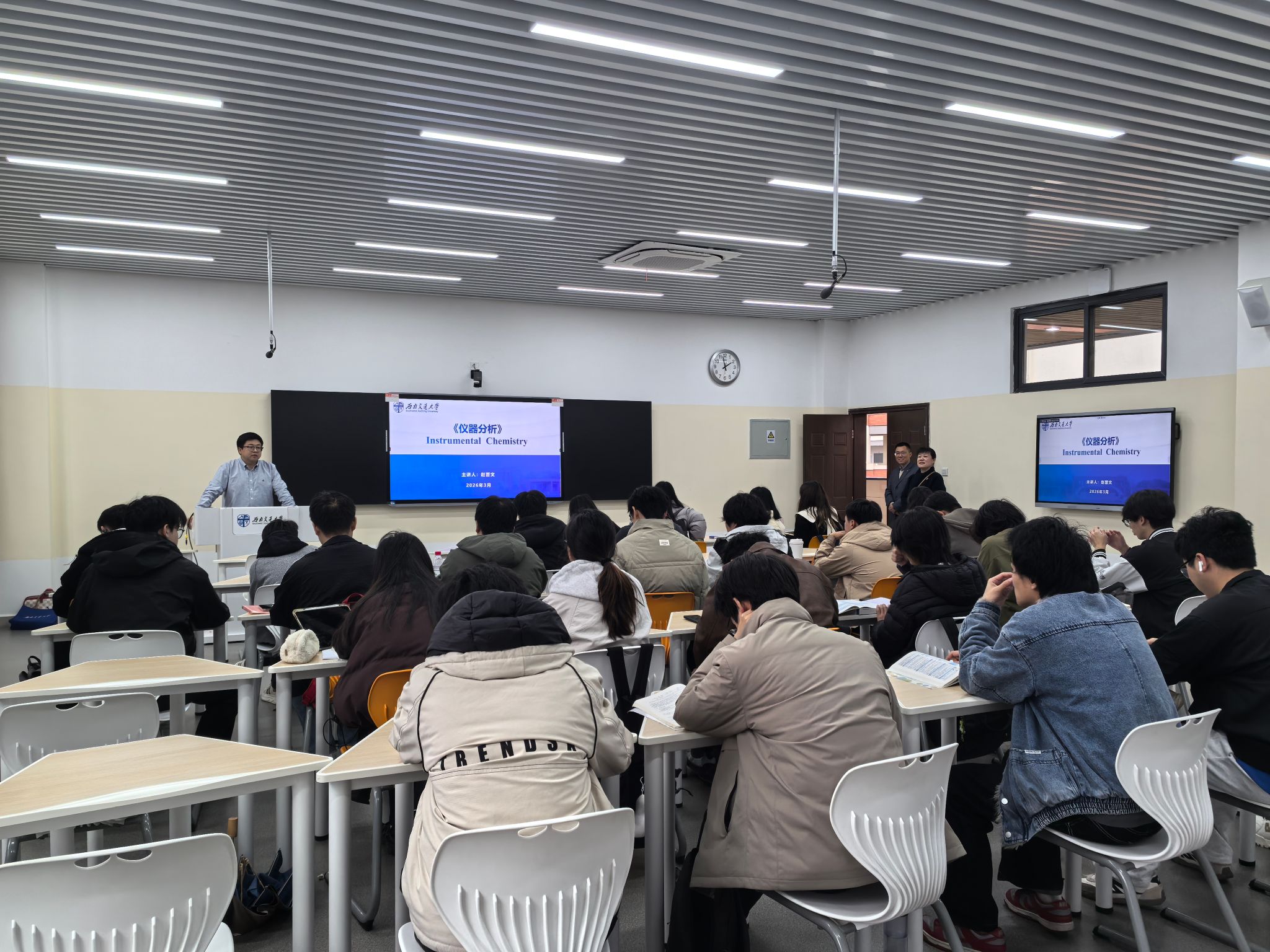 公司领导在犀浦校区9号教学楼检查了由赵晋文老师授课的《仪器分析》课程的教学情况,主要对教师授课、员工出勤、课堂纪律、员工学习状态等进行深入了解。从检查情况看,教师教学准备充分,课堂教学组织有序,员工们到课率高,课堂氛围活跃,充分展现了新学期新面貌。