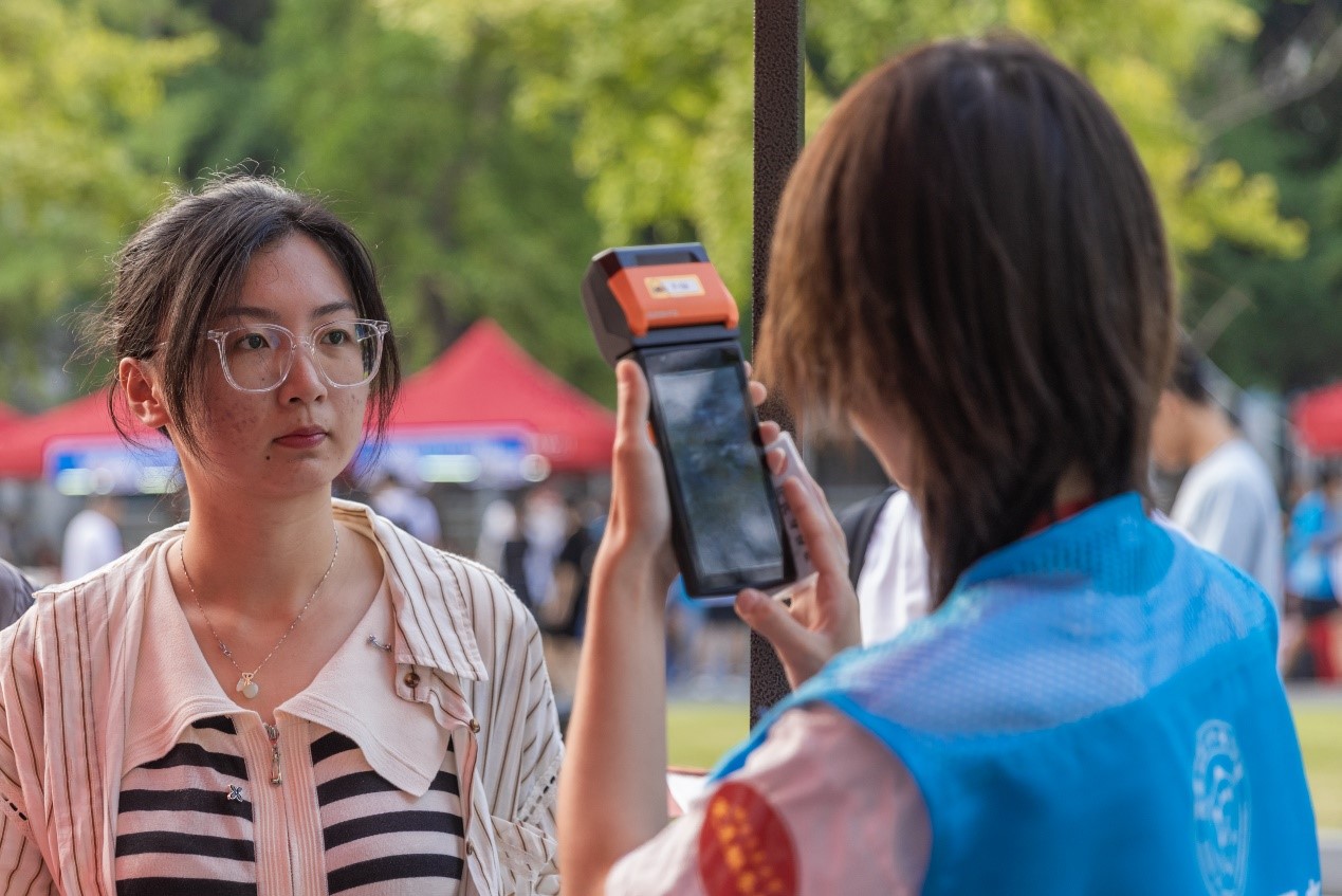 在迎新点,党员同志佩戴党员徽章,主动承担起各项现场工作,党员服务队的标志牌前,永远都有他们奉献的身影,以热情的笑容温暖新生,减少新生初入大学的陌生感。