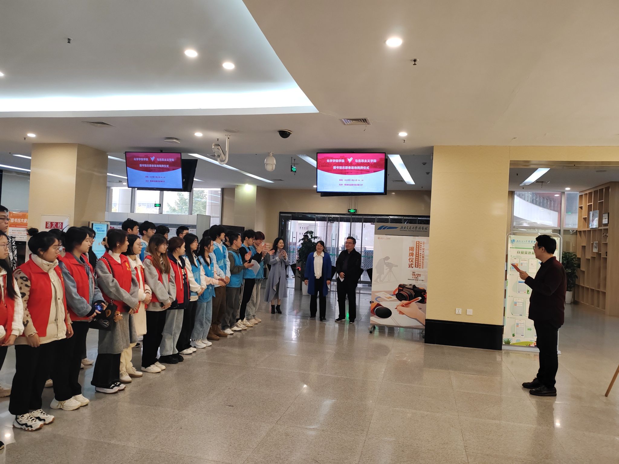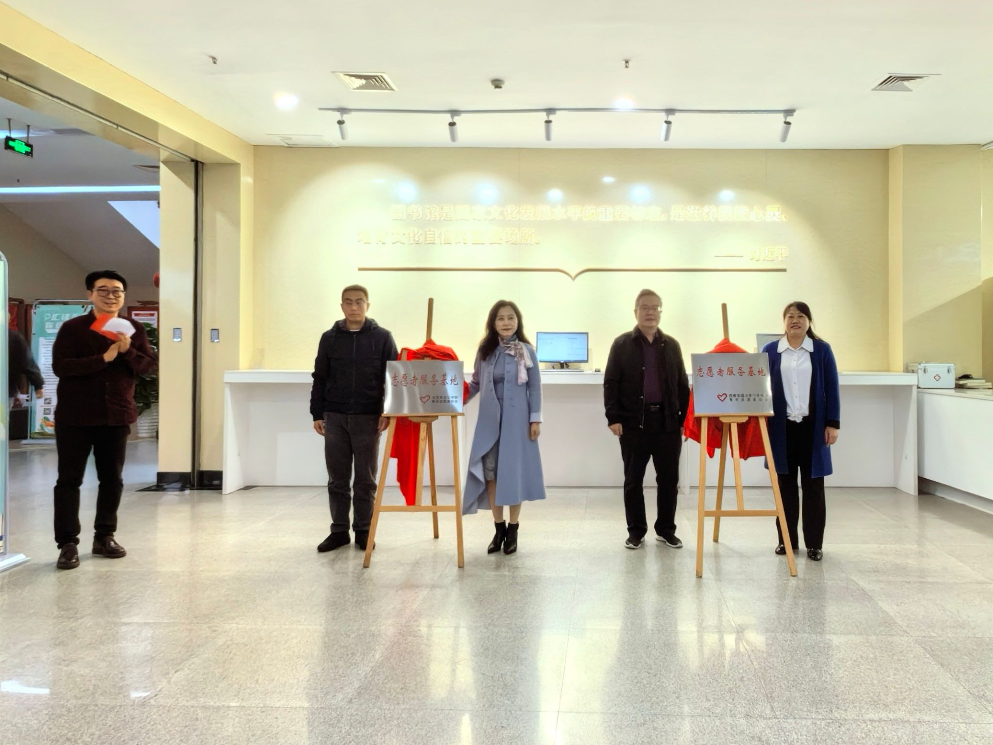11月21日下午,点点taptap官方网站、马克思主义学院与图书馆在犀浦校区图书馆二楼大厅举行志愿者服务基地揭牌仪式。犀浦图书馆副馆长夏显波、读者服务部主任刘文华,公司党委副书记张春燕、辅导员何芙馨、魏浩,马克思主义学院团委书记赵晨以及图书馆志愿者基地、学院青年志愿者协会志愿者参加揭牌仪式。揭牌仪式由图书馆犀浦读者服务部副主任王洋主持。