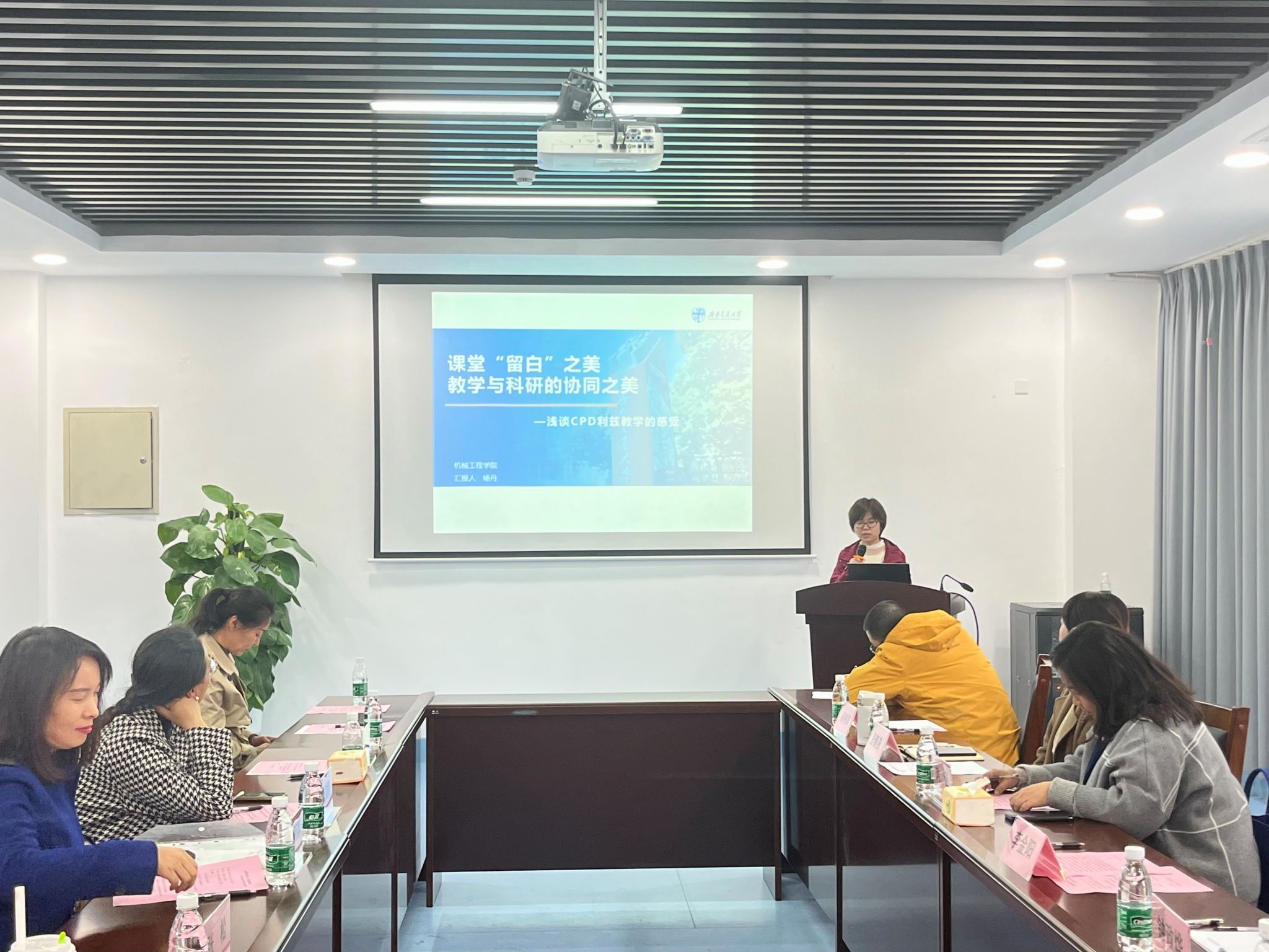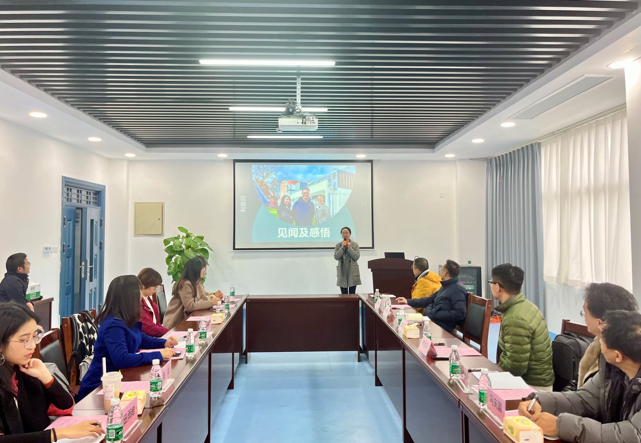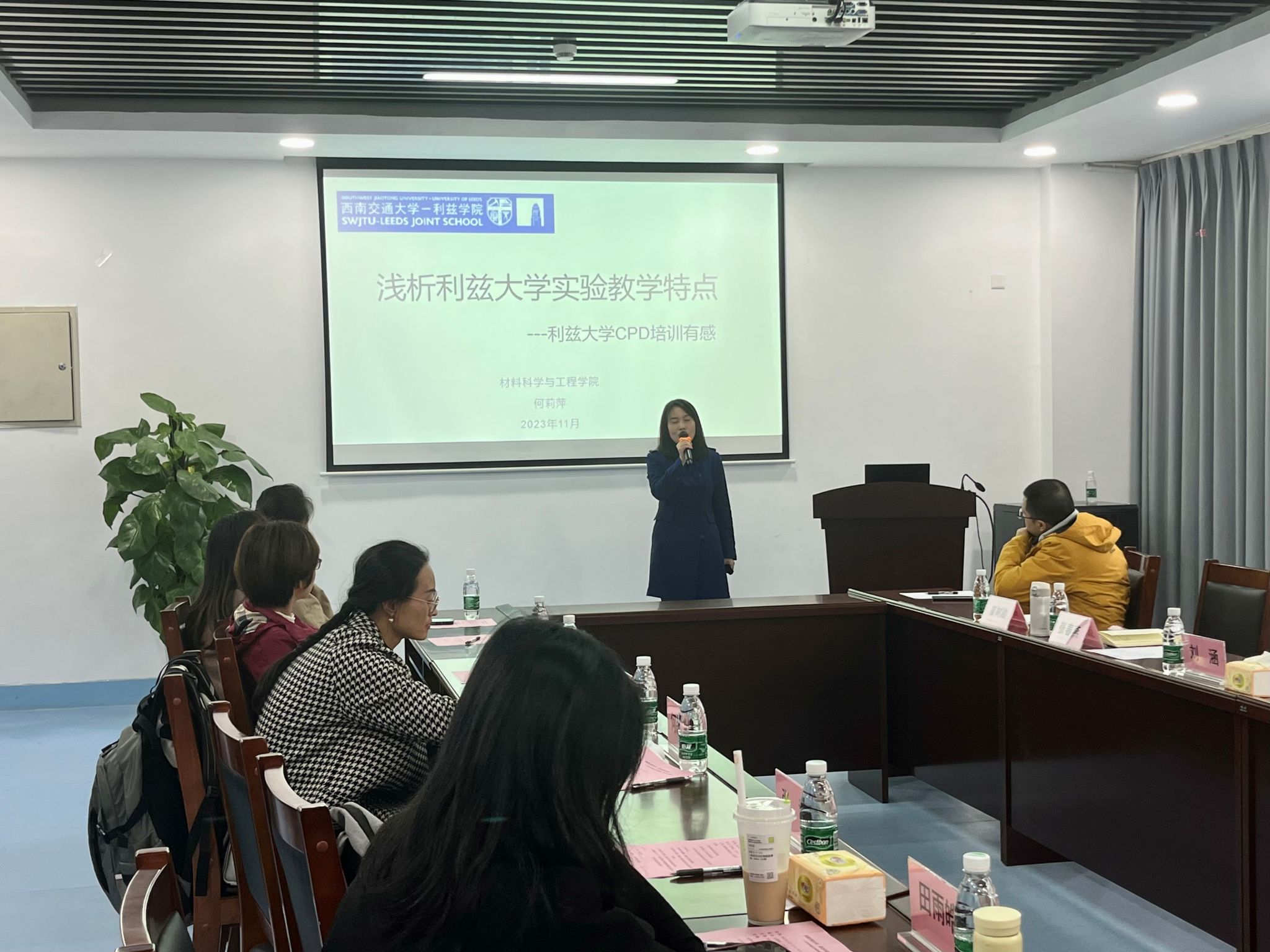 随后的分享环节,李金阳老师从个人成长经历入手,分享了参加利兹大学之行的教学与科研交流心得;民革党员、机械学院杨丹老师以《课堂“留白”之美教学与科研的协同之美》,展现了对利兹大学课堂与科研的和谐共舞的独特感受。此外,物理学院崔雅静、材料学院何莉萍两位老师对利兹大学教学模式、实验教学等进行了详细介绍。