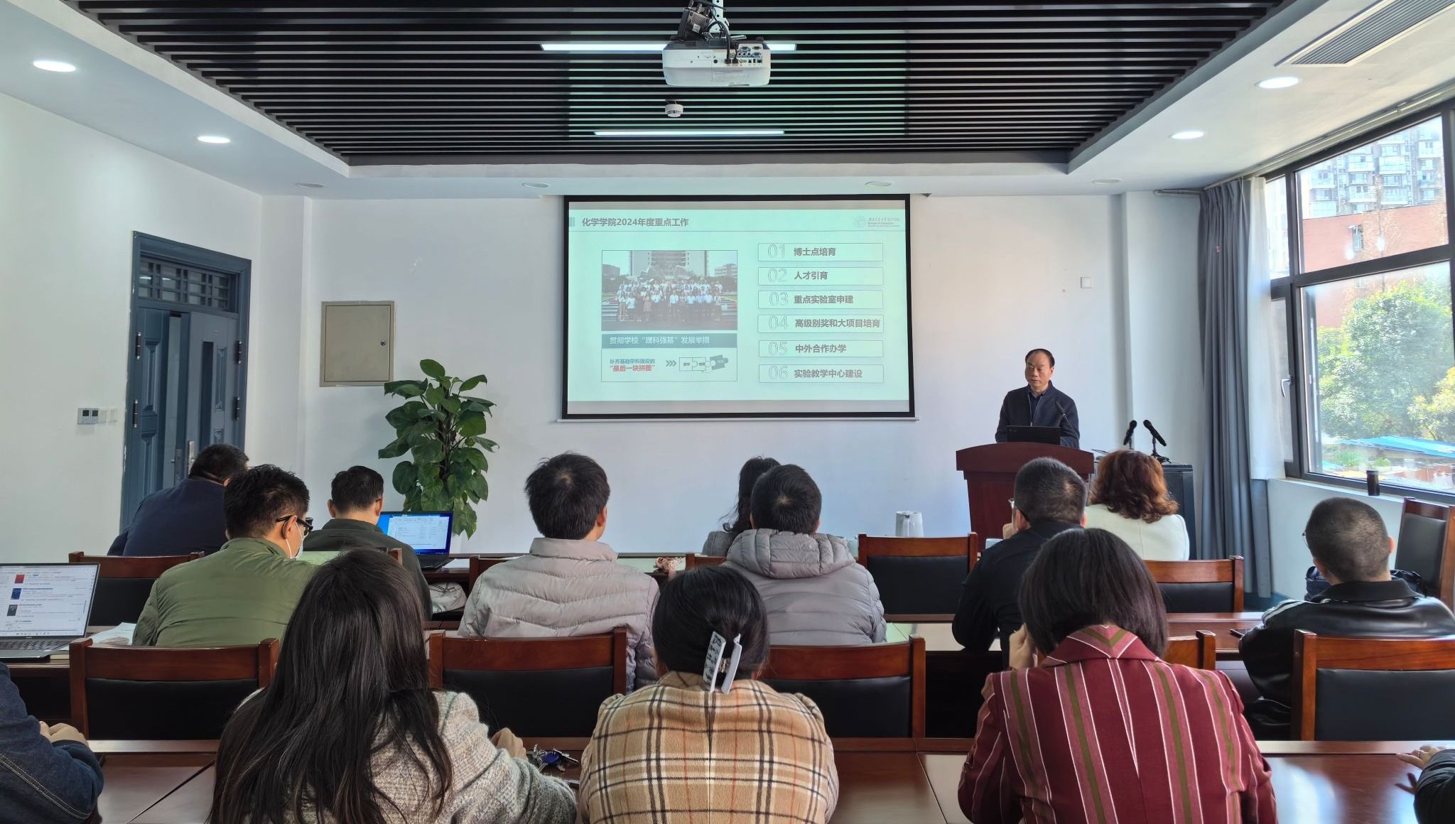 周祚万经理首先带领全院教职工学习了学校部署的2024年8个方面、33项重点任务,以及特别部署的十大重中之重工作。2024年学校将坚持党建引领、学科牵引、教学核心、科研驱动、人才支撑、经费保障,推动教育、科技、人才“三位一体”融合发展。