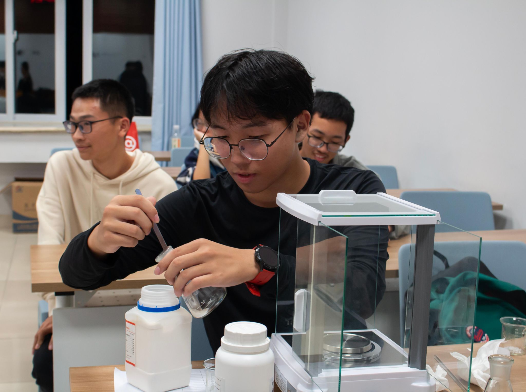 或许你见过会结晶的天气瓶,像流沙的黄金雨,但你亲手做过会变色的变色瓶吗?此次游园会中,点点taptap官方网站员工会的工作人员们准备了“变色瓶制作”的趣味小实验,同学们在实验中,不仅锻炼了称量、配置溶液等实验操作动手能力,更增强了对化学的热情与兴趣!活动结尾的科普视频也给同学们留下了深刻的印象:三镜反应、结晶析出、络合变色……每一次的原子碰撞都擦出了不一样的火花,每一次的分子改变构成了我们这个绚丽多彩的世界!