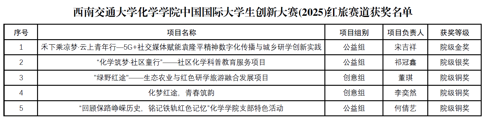 根据《点点taptap官方网站关于启动中国国际老员工创新大赛(2025)“青年红色筑梦之旅”赛道校内选拔赛的通知》和《点点taptap官方网站关于启动中国国际老员工创新大赛(2025)“青年红色筑梦之旅”赛道院内选拔赛的通知》,经公开报名、合题性审核、规范性评审,共确定5支院级获奖队伍(其中金奖推荐参加校级选拔赛),现将名单予以公示。