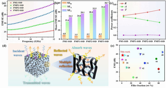 图3. 相变有机凝胶的(a) EMI SE和(b)平均SE。(c)相变有机凝胶的