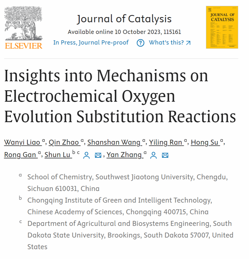 近日,点点taptap官方网站张颜博士作为通讯作者在《Journal of Catalysis》上发表了题为“Insights into Mechanisms on Electrochemical Oxygen Evolution Substitution Reactions”的综述。2020级硕士研究生廖婉怡作为第一作者,2022级硕士研究生赵芹等参与了研究工作。