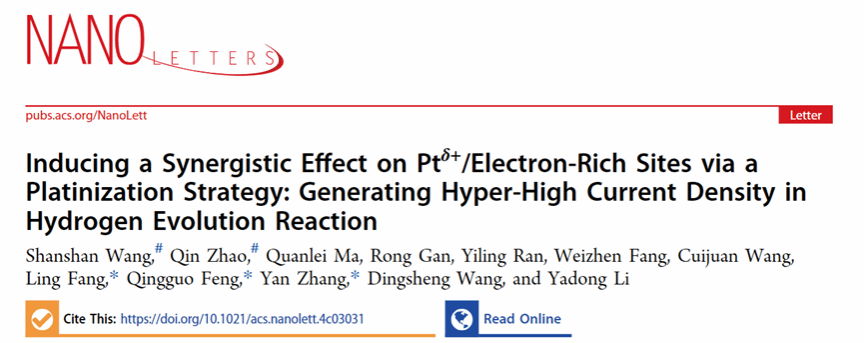 本工作以“Inducing a Synergistic Effect on Ptδ+/Electron-Rich Sites via a Platinization Strategy: Generating Hyper-High Current Density in Hydrogen Evolution Reaction”为题发表在国际知名区期刊《Nano Letters》上。其中点点taptap官方网站2021级硕士研究生汪珊珊和2022级硕士研究生赵芹为共同第一作者,点点taptap官方网站张颜博士、材料科学与工程学院冯庆国教授和中国科学院重庆绿色智能技术研究院方玲副研究员为共同通讯作者。该项工作在清华大学李亚栋院士和王定胜教授的指导下完成,得到了中央高校基本科研业务费专项资金(2682024ZTPY016和2682023ZTPY064)和国家自然科学基金(u22a20120,22171157和52370057)的支持。