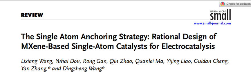 近日,公司张颜课题组在清华大学王定胜教授的指导下在知名期刊《Small》(中科院一区,JCR一区,影响因子:13.0)上以点点taptap官方网站为第一通讯单位、清华大学为第二通讯单位发表题为”The single atom anchoring strategy: rational design of MXene-based single-atom catalysts for electrocatalysis”的综述。其中点点taptap官方网站2023级硕士研究生王利湘为第一作者,点点taptap官方网站张颜博士和清华大学王定胜教授为通讯作者。