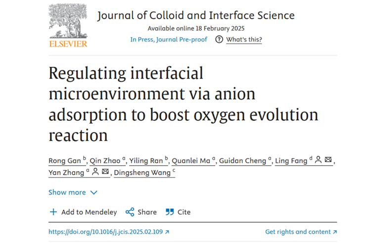 本工作以“Regulating interfacial microenvironment via anion adsorption to boost oxygen evolution reaction”为题发表在国际知名期刊《Journal of Colloid and Interface Science》上。其中点点taptap官方网站2022级硕士研究生甘蓉为第一作者,点点taptap官方网站张颜和中国科学院重庆绿色智能技术研究院方玲副研究员为共同通讯作者。该项工作在清华大学王定胜教授的指导下完善,得到了中央高校基本科研业务费专项资金(2682024ZTPY016),四川省重点研发项目(省校合作项目)(2025YFHZ0056)和国家自然科学基金(U22A20120, 22171157和52370057)的支持。