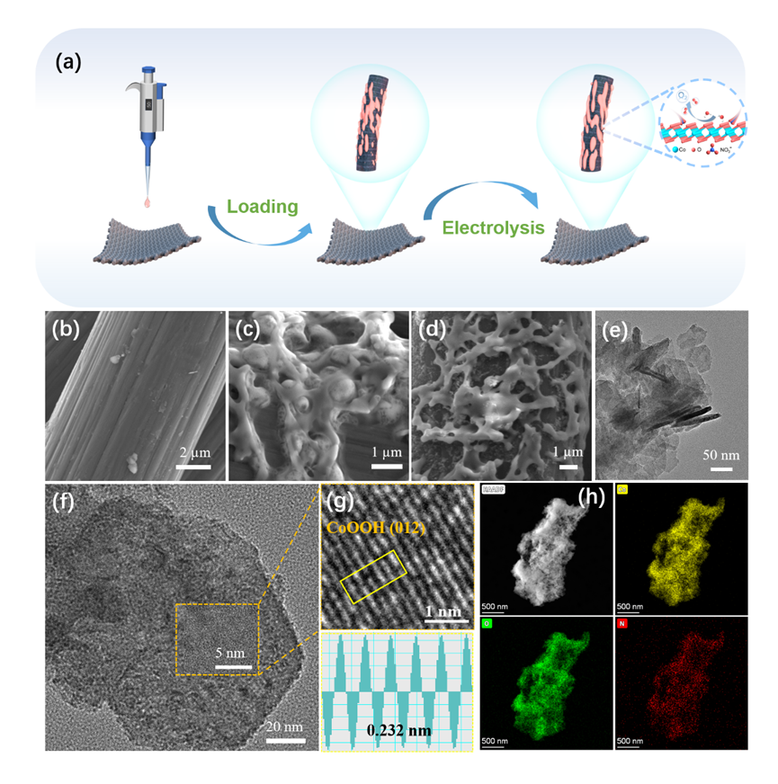 在这项工作中,作者利用一步电化学重构的方法得到催化剂CoOOH-NO3-,这是因为在电化学过程伴随着原料中的阴离子吸附在CoOOH上,进而通过吸附的阴离子调控界面微环境来促进OER。究其原因,是因为吸附阴离子后可改善CoOOH内紧密层OH-过渡吸附问题,使活性位点更易枝接OH-,从而调节界面微环境。通过一系列实验验证了界面微环境得到调控,如电极表面接触角变小易于O2释放解析,促进Co向高价态转变和降低反应发生起始电位。此外,一步合成方法与微环境调控策略在多种金属盐中(氯盐,醋酸盐)都是适用的。这项工作为直接利用金属盐提供了一种非化学合成的简便方法,为理解阴离子吸附调控微环境进而提升催化活性提供合理的思路和线索。