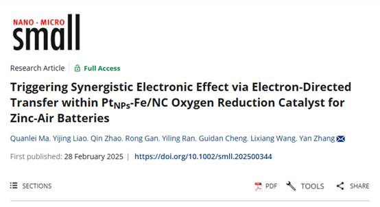 本工作以“Triggering Synergistic Electronic Effect via Electron-Directed Transfer within PtNPs-Fe/NC Oxygen Reduction Catalyst for Zinc-Air Batteries”为题发表在国际知名期刊《Small》上。其中点点taptap官方网站2022级硕士研究生马全磊为第一作者,点点taptap官方网站张颜博士为通讯作者。该项工作得到了四川省重点研发项目(省校合作项目)(2025YFHZ0056)和中央高校基本科研业务费专项资金(2682024ZTPY016)的支持。