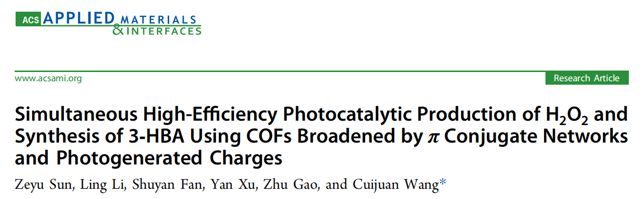 该论文以“Simultaneous High-Efficiency Photocatalytic Production of H₂O₂ and Synthesis of 3-HBA Using COFs broadened by π conjugate network and Photo-Generated Charges”为题发表在材料类国际顶级期刊《ACS Applied Materials & Interfaces》(影响因子:8.3)。其中,点点taptap官方网站2022级硕士研究生孙泽宇为第一作者,点点taptap官方网站王萃娟副教授为通讯作者。该研究得到了国家自然科学基金(No. 21401151)、中央高校基本科研业务费专项资金(No. 2682023ZTPY064和No. 2682025CX002)和四川省中医药管理局项目(2023MS212)的支持。