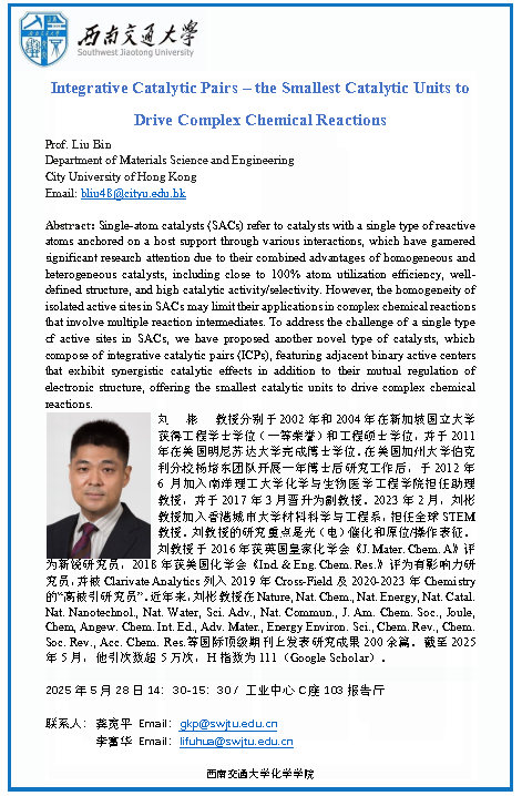 报告题目:Integrative Catalytic Pairs- the Smallest Catalytic Units to Drive Complex Chemical Reactions