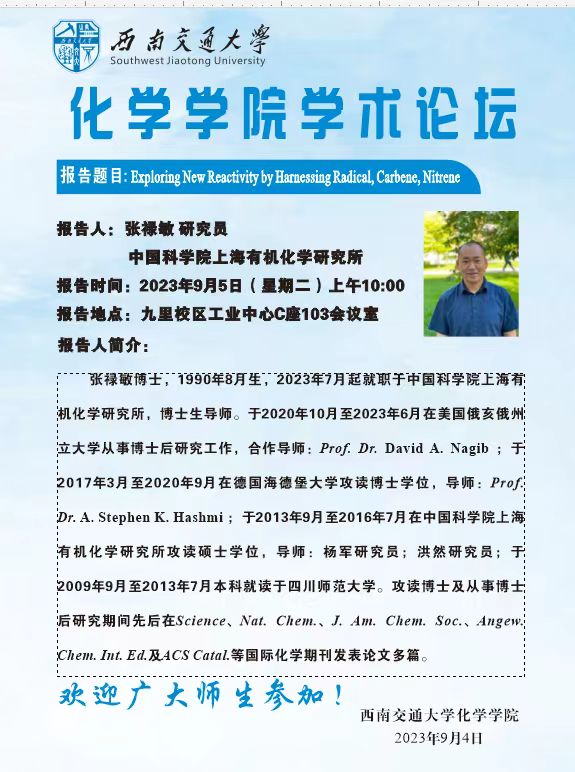 报告人:张禄敏 研究员 中国科学院上海有机化学研究所