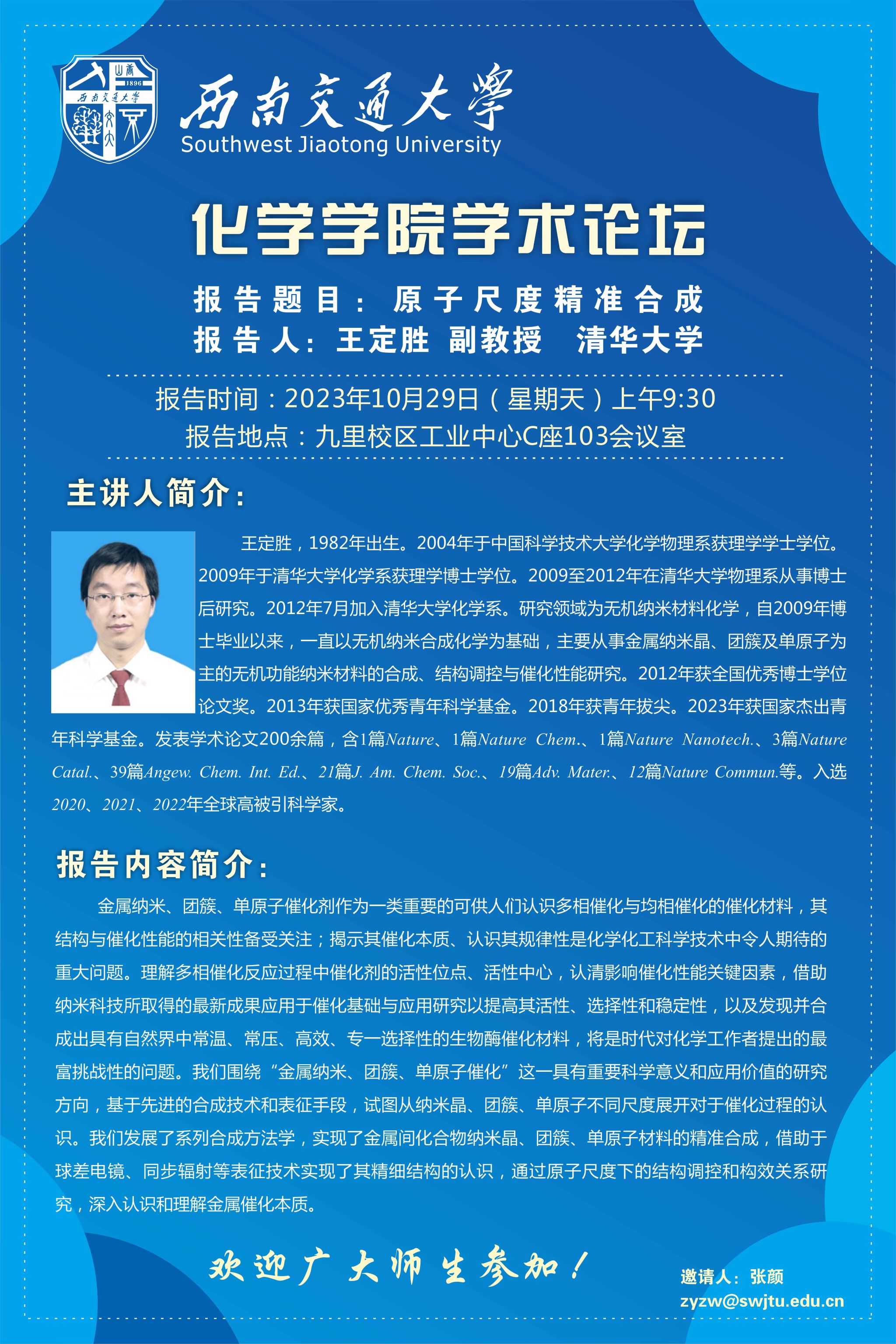 报告题目:原子尺度精准合成