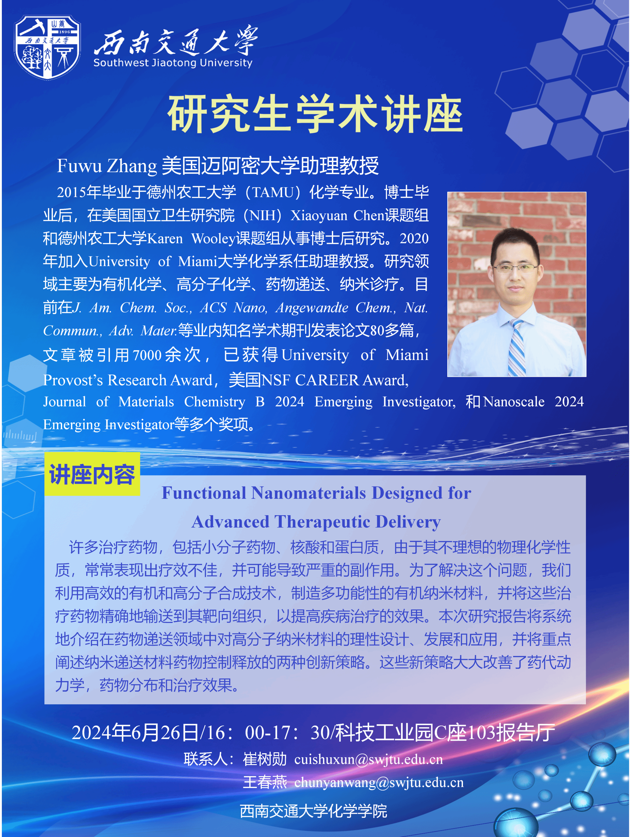 点点taptap官方网站研究生学术讲座:《Functional Nanomaterials Designed for Advanced Therapeutic Delivery》