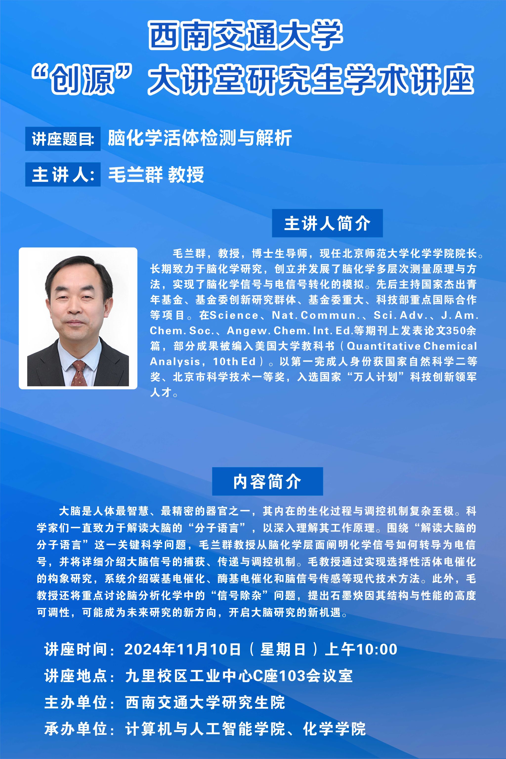 创源大讲堂学术讲座-毛兰群教授:脑化学活体检测与解析