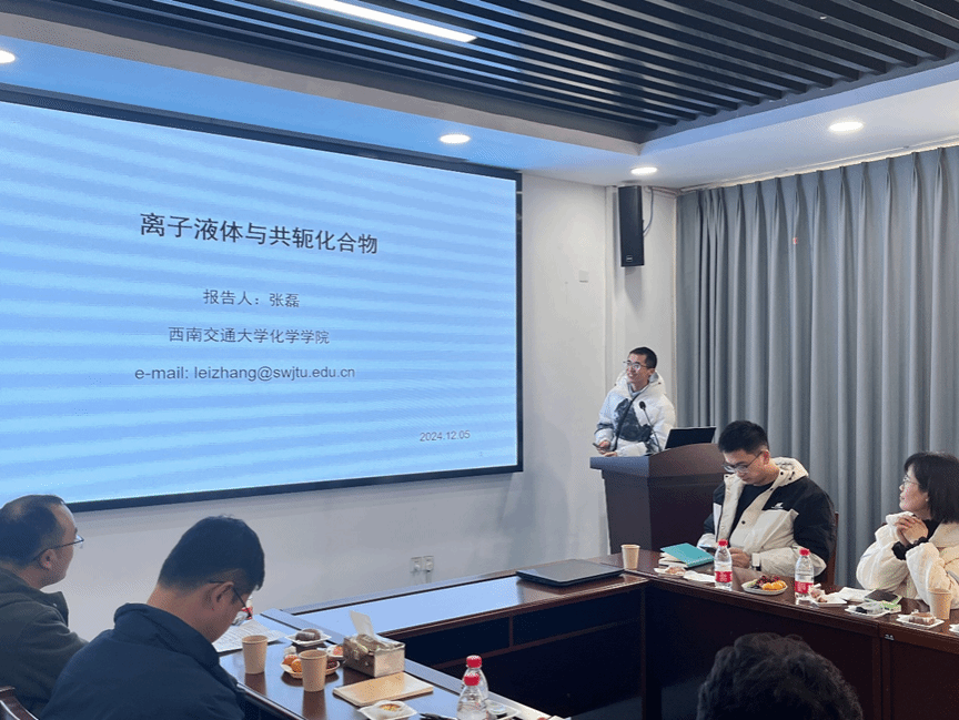 张磊老师的主要研究方向包括晶态聚合物、单分子力学、离子材料与器件。主持国家自然科学基金青年项目1项。以第一作者身份在Nat. Commun.、Angew. Chem. Int. Edit.、Cell Rep. Phys. Sci.、Green Chem.、Small、J. Mater. Chem. A、J. Hazard. Mater.等期刊发表论文9篇。获授权发明专利2项。其分享内容主要聚焦于离子液体与共轭化合物领域。共轭有机功能材料在光电传感、乏燃料后处理、储能等领域具有良好的应用前景,但其加工性能差的缺点严重限制了实际应用。针对这一问题,张磊老师重点介绍了利用离子液体提升共轭小分子和聚合物加工性能的研究进展,通过该策略,实现了共轭聚合物的溶液加工和熔融加工,为其在实际场景中的应用奠定了基础。