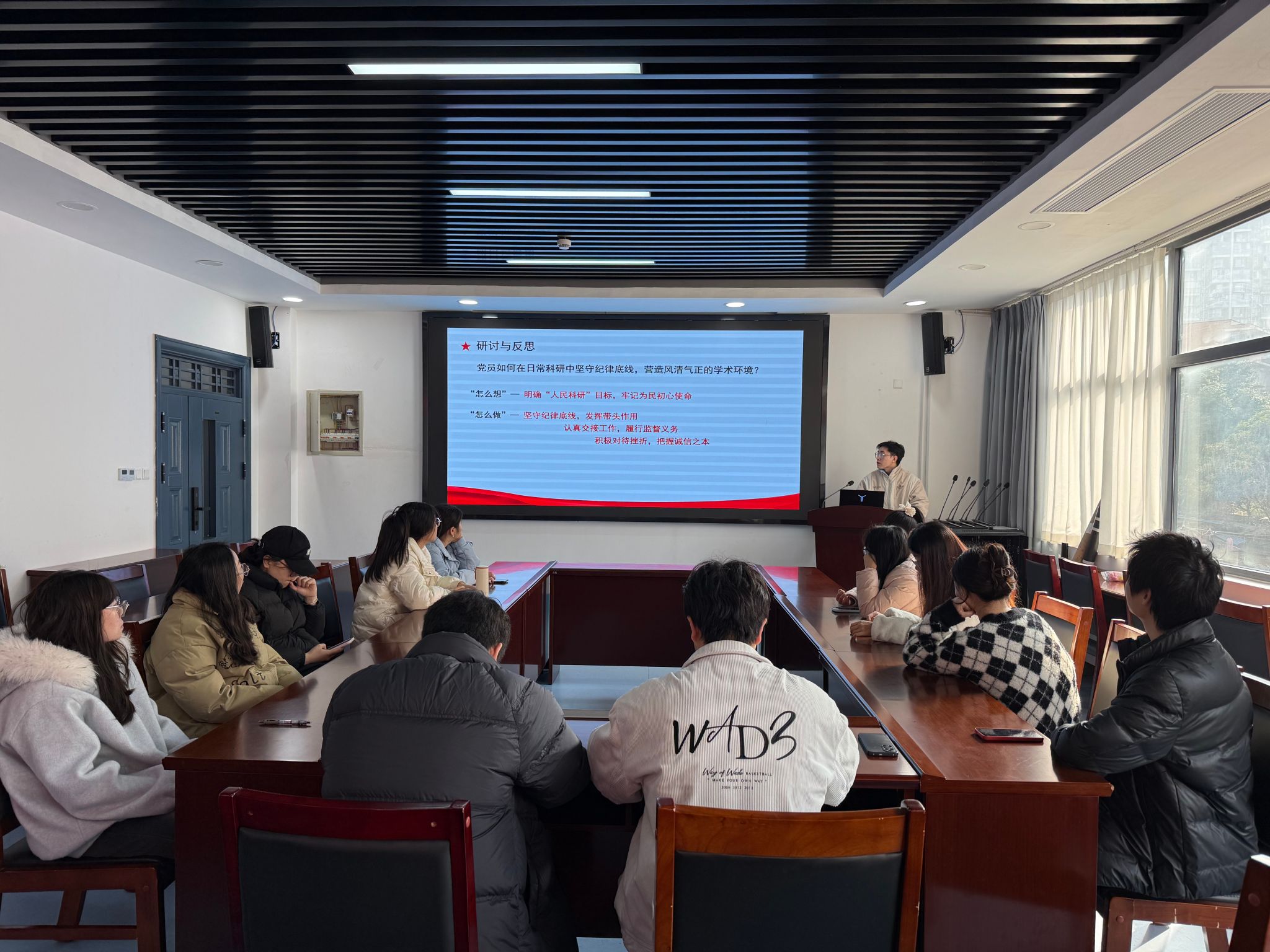 聚焦学术诚信与实验室安全核心议题,通过剖析学术不端典型案例、借鉴优秀院校 “学术诚信月” 实践经验,以专题研讨、互动交流等形式,引导研究生党员深刻认识数据造假、不当署名等行为的危害,明确 “恪守底线的示范者、健康文化的建设者、不良风气的监督者” 三重定位。党员们结合科研实际展开热烈讨论,纷纷表示将在实验操作、论文发表等环节严守学术规范,主动营造风清气正的科研环境。