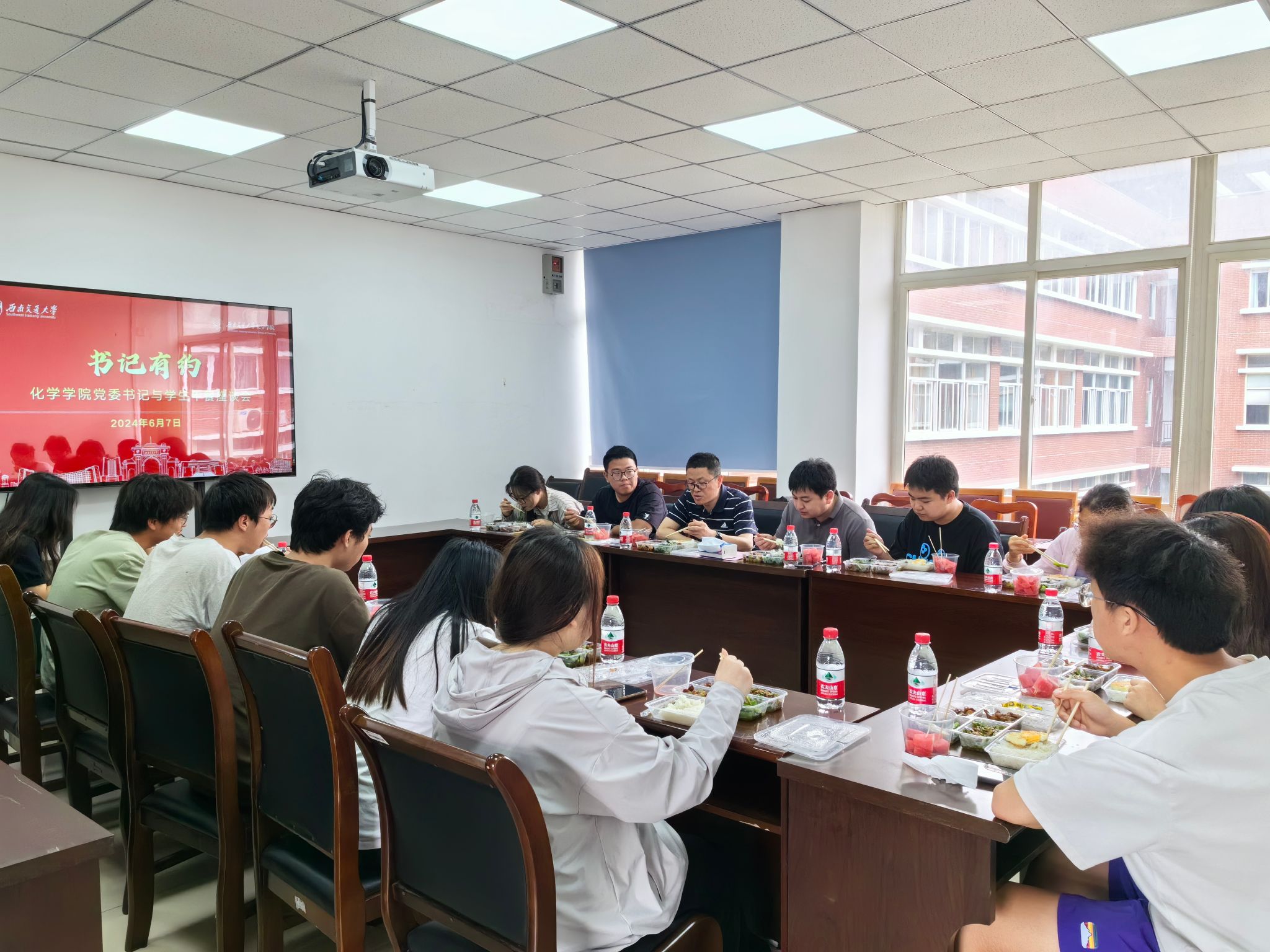 本次午餐会在轻松愉悦的氛围中进行,向书记与同学们围桌而坐,他亲切地询问同学们的日常学习、生活情况,同学们也分享了自己未来发展的规划,讲述了近期的学习工作安排和收获。