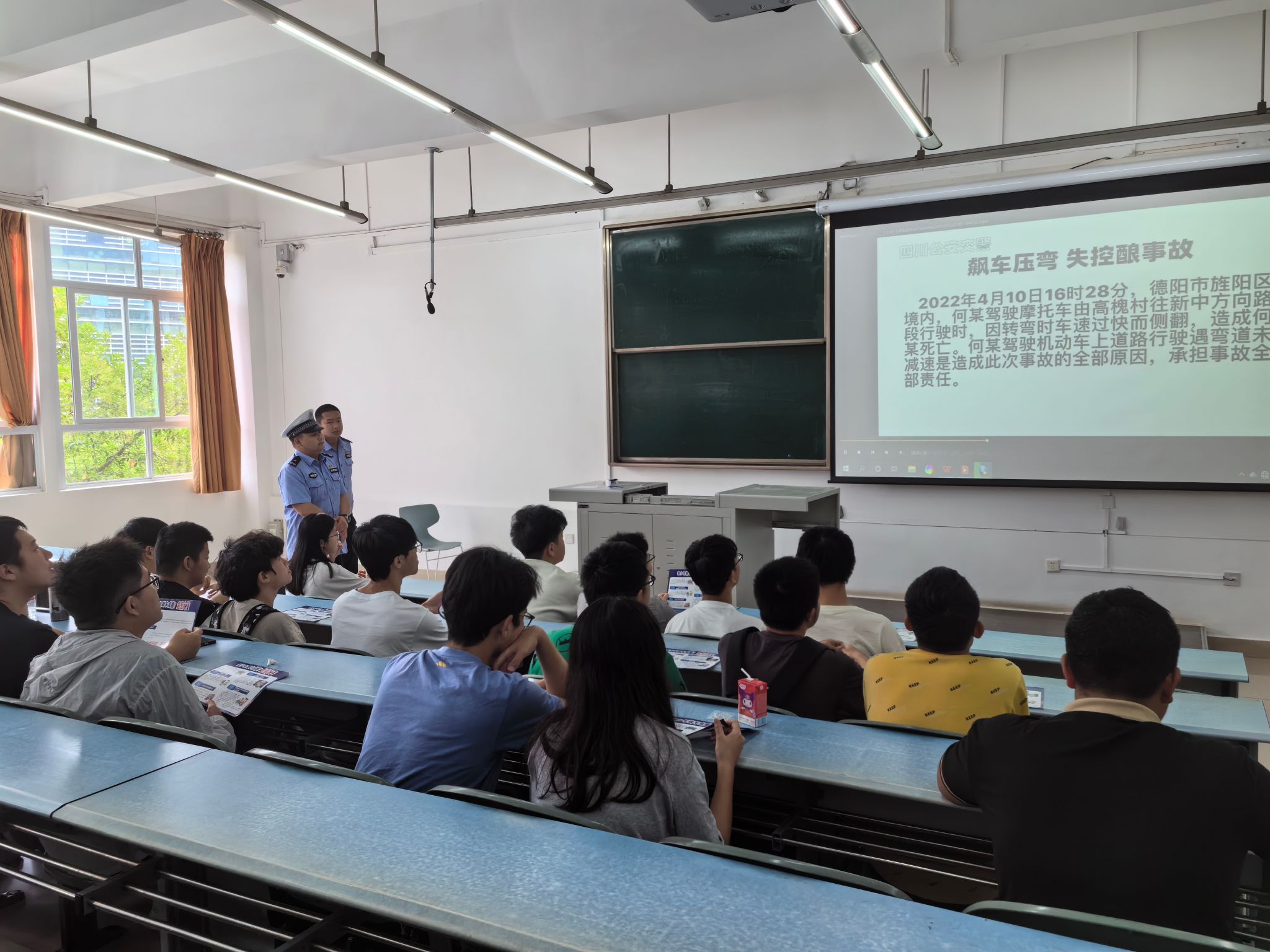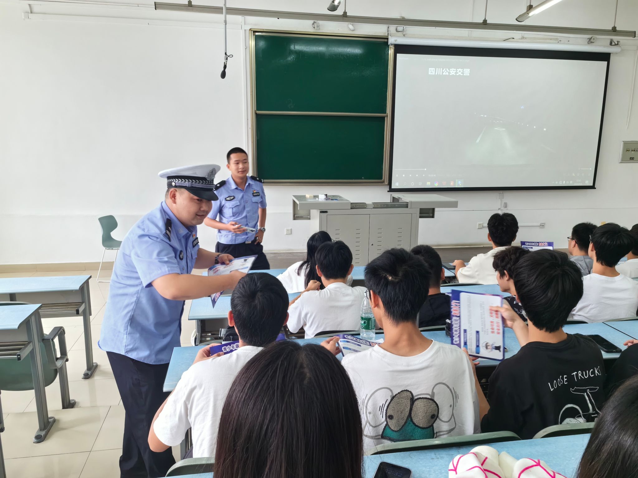 宣讲活动中,警官们和同学们共同观看学习了真实事故发生的视频警示案例,并向同学们发放了交通安全宣传资料,在现场解答了大家关于交通安全的疑问。他们耐心细致地解答每一个问题,让同学们对交通安全知识有了更深入的了解。