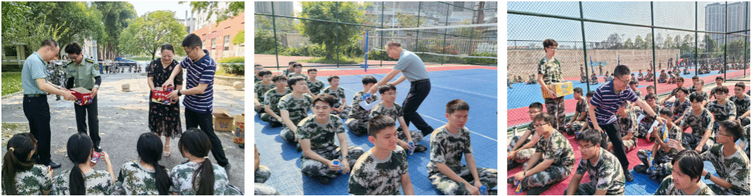 公司还为同学们精心准备了慰问品,向书记与周经理将慰问品一一分发给到场的参训学员们,现场氛围温馨动人,极大地鼓舞了同学们的士气。同学们纷纷表示,将会以更高的热情和积极的态度投入到接下来的军训和学习生活中,不辜负学院领导和老师们的关怀与期望。
