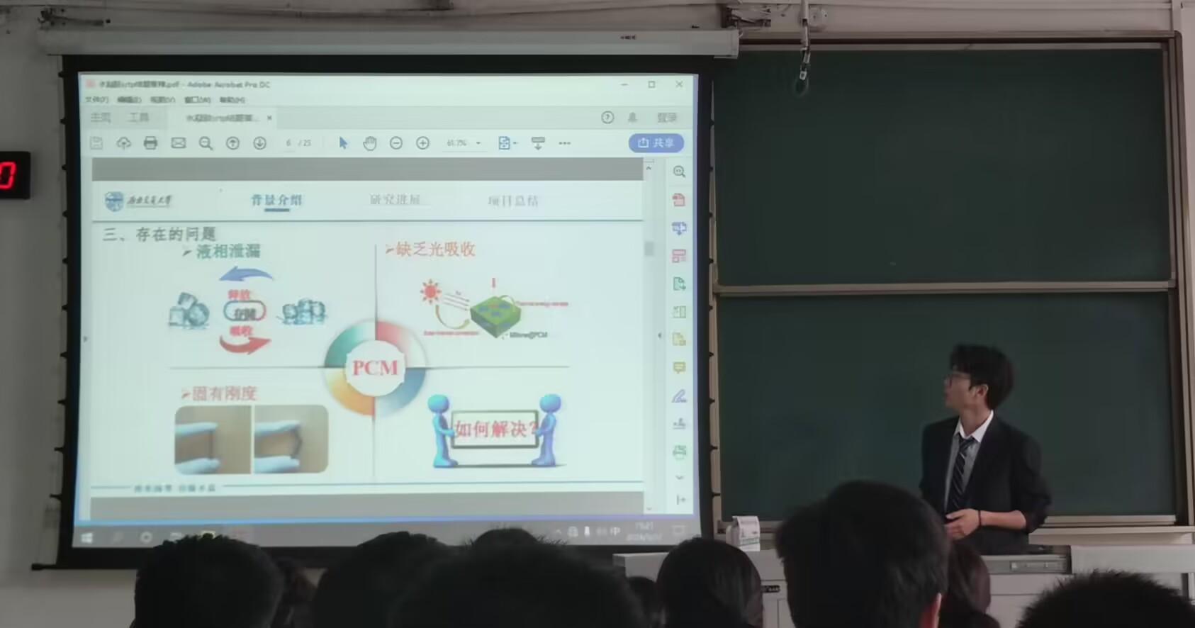 科研为帆,探索无界。科研路上,我聚焦国家需求与民生痛点。参研“相变凝胶传感器”项目时,为攻克材料粘附性难题,连续三个月在实验室调整配方,记录上千组数据。最终,凝胶成功应用于可穿戴设备,实现太阳能供能与运动监测。此后,我又转向光催化抗菌材料研究,在补牙树脂中加入氮掺杂氧化锌,降低龋齿复发率。当论文获省级奖项时,我深知:科研的意义不在论文,而在“以化学之力,护万家健康”。