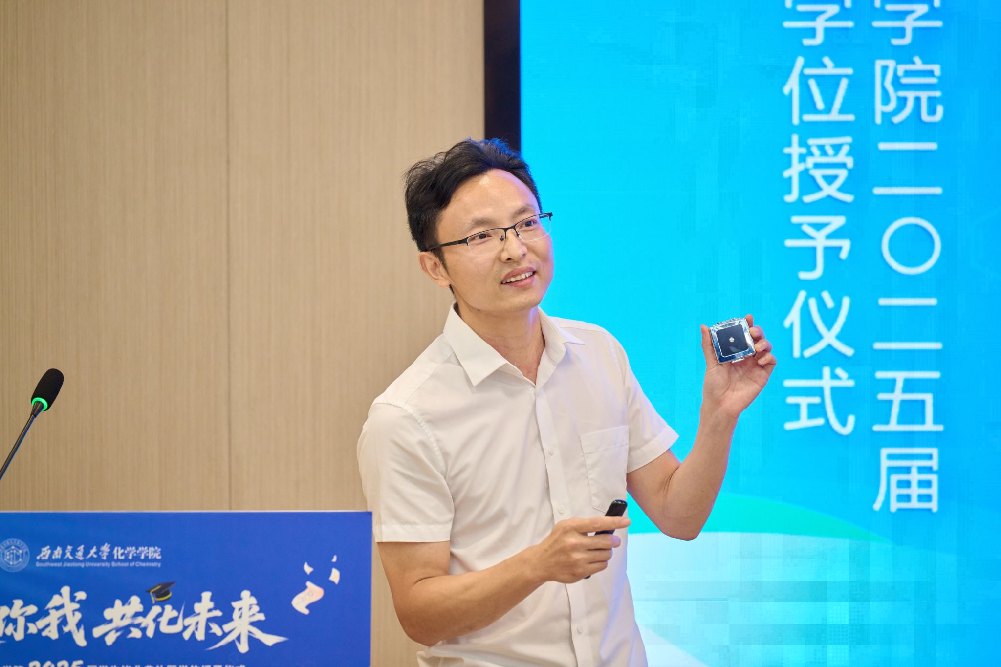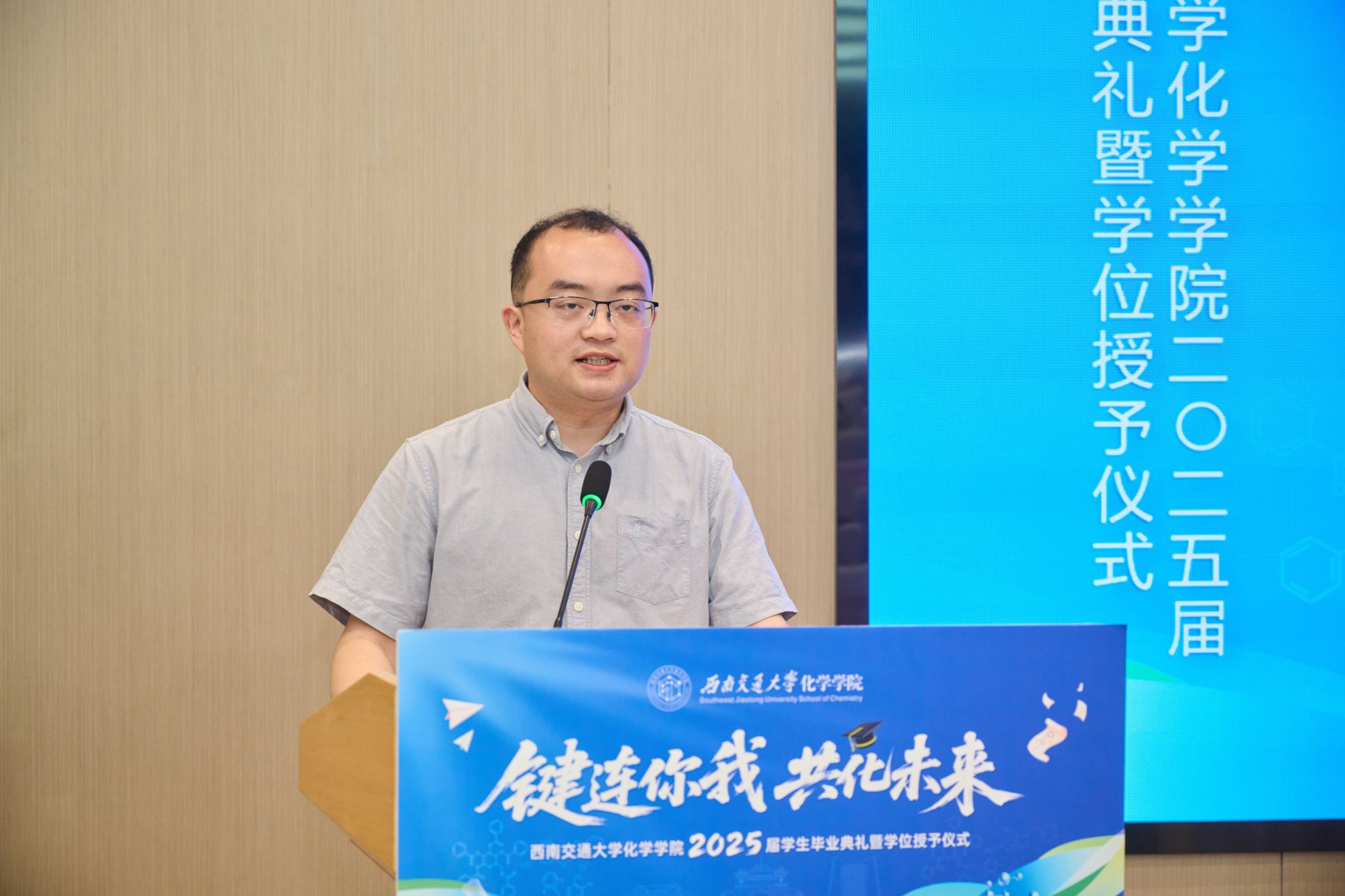 青年教师代表孙得翔老师发言,他以自己的亲身经历为引,激励毕业生们要保持对科学的热爱和对生活的热情,勇敢地面对未来的挑战。