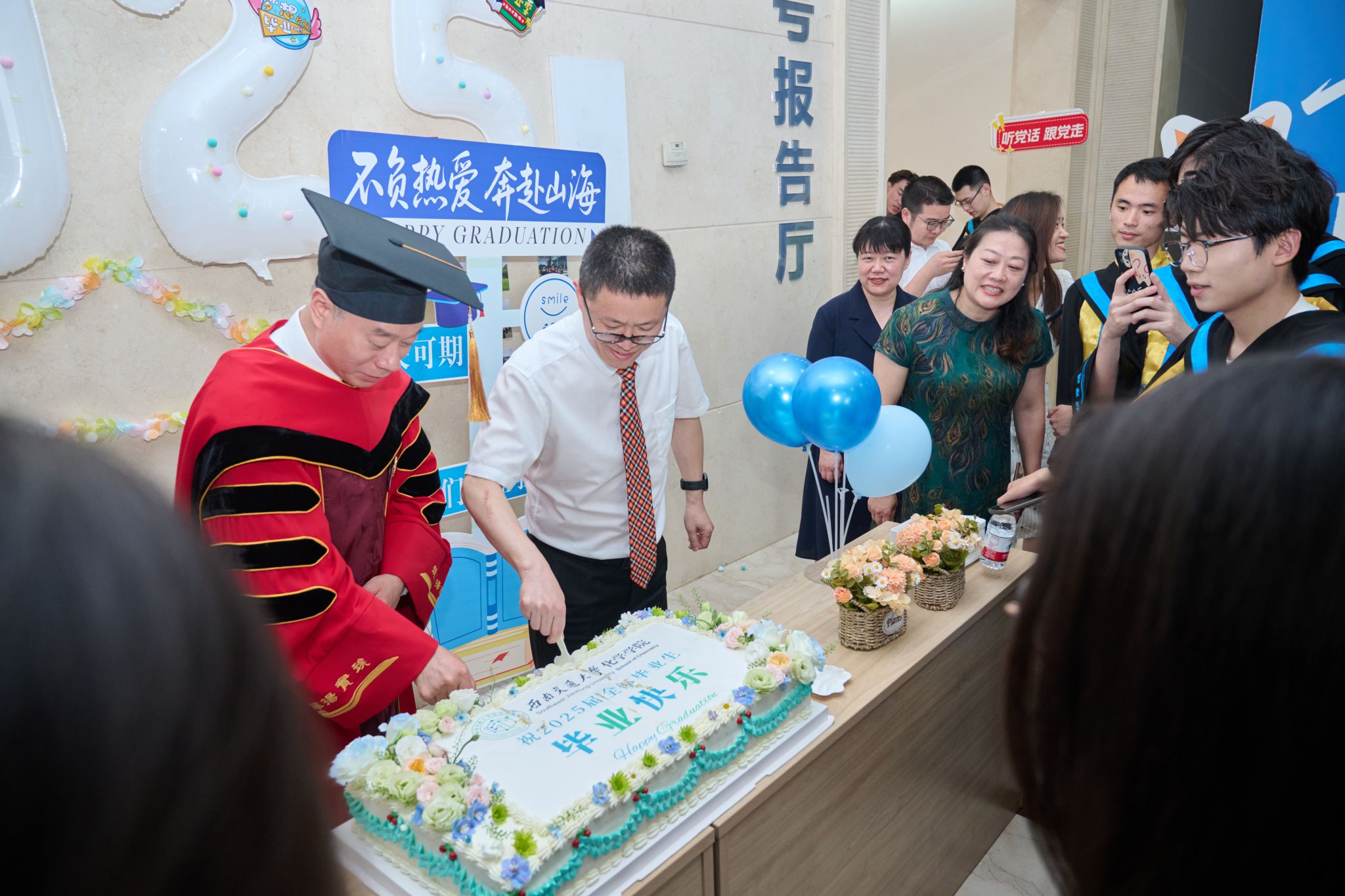 典礼结束后,学院在会场外特设了冷餐和打卡留念点,学院师生家长共享美食、共话未来!